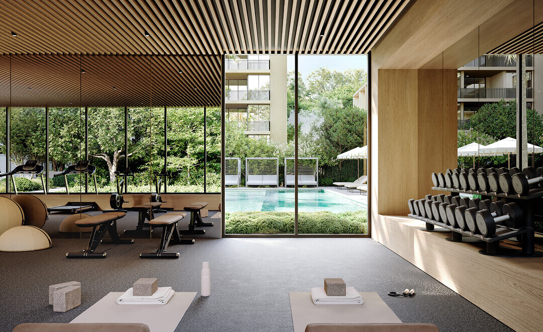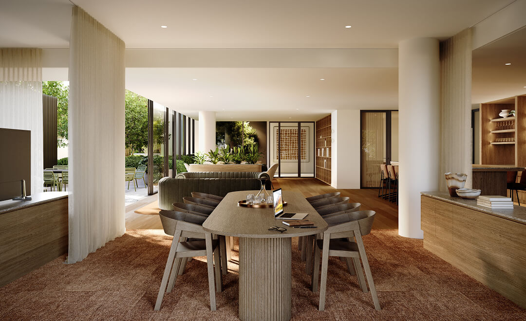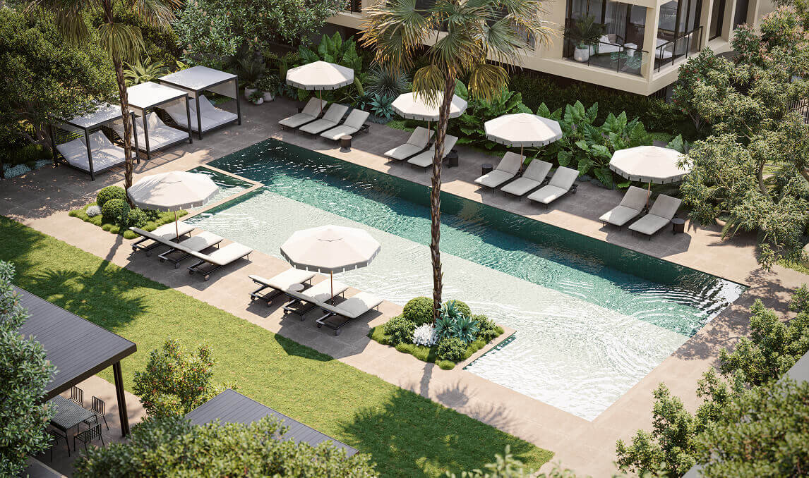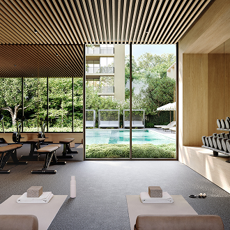 With approximately one acre of landscaped gardens and shared amenities, the Garden Club at Florian Rise addresses a vital lifestyle need by crafting environments that nurture our innate connection to the world around us. Comprising walking paths, an expansive multi-purpose lawn, a pool, lounges, and sheltered outdoor pavilions for gathering and entertainment, the Garden Club maintains a resilient, community-focused lifestyle that transcends typical apartment amenities and creates a place of modern relevance.